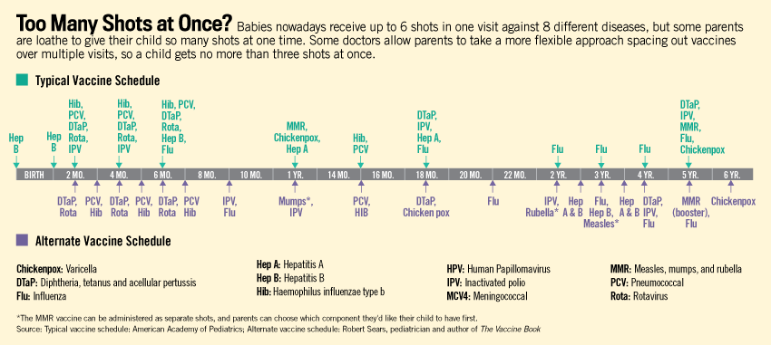 The concept of a ‘flexible’ vaccination schedule was popularized by Dr. Robert Sears’ 2007 bestseller, “The Vaccine Book: Making the Right Decision for Your Child”. The book contains ‘Dr. Bob’s Alternative Vaccine Schedule’ and ‘Dr. Bob’s Selected Vaccine Schedule’, formulas he provides parents to space out or withhold vaccines, respectively. Dr. Bob’s book has fueled a parental desire for physicians who are flexible regarding their child’s vaccination schedule: a study of first time expectant mothers showed that 75% of mothers wanted their children to receive all the vaccines recommended by the CDC, but most felt it was important that their pediatrician be flexible regarding the schedule. Dr. Bob claims that the CDC’s and American Academy of Pediatrics’ schedule has children receive too many vaccines at once, overwhelming their immune systems (there is no evidence for this claim). Part of what is so dangerous about Dr. Bob’s alternative schedule is that it seems to provide a middle ground for parents – not just accepting or rejecting all pediatric vaccinations, but allowing parents to make an ‘informed’ decision.