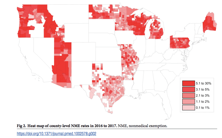 Spatial clusters of NMEs can predispose regions to outbreaks: Olive et al.’s 2018 study was surprisingly accurate at predicting hotspots for future measles outbreaks based on rates and geographic clustering of NMEs across the U.S. Therefore decreasing NME rates can protect communities from outbreaks, while increasing NME rates can endanger them.